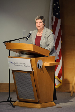 Napolitano’s talk at UCLA was part of a lecture series in which she is visiting colleges and universities across the country to discuss the most important homeland security issues facing America.